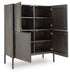 | Details | Doors and posts made with solid oak wood, Sides, top, back and interior made with oak veneer and engineered wood substrate, Espresso finish, 4 doors with push magnet function, 6 fixed shelves | |