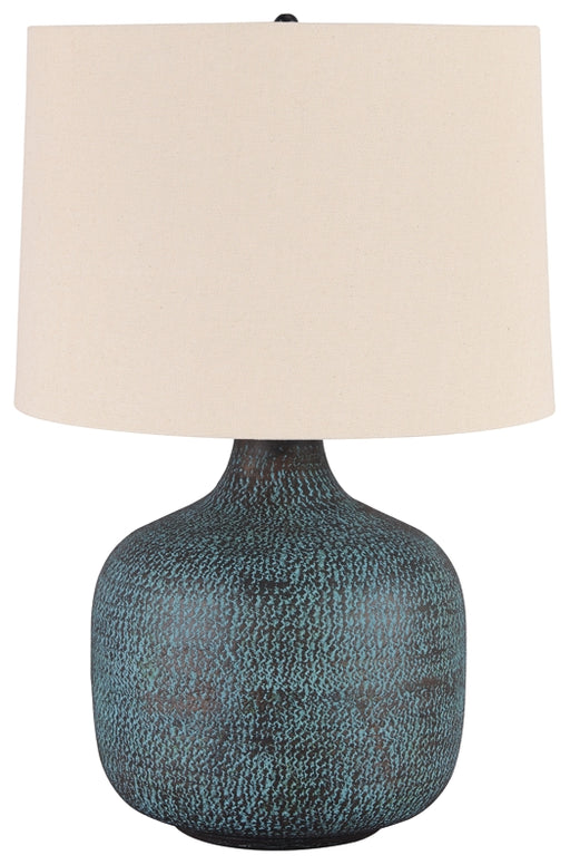 Signature Design by Ashley®Evoke a vintage vibe in a thoroughly modern way with this glass table lamp. The gray-blue and light goldtone of its mercury-glass finish reflects a...