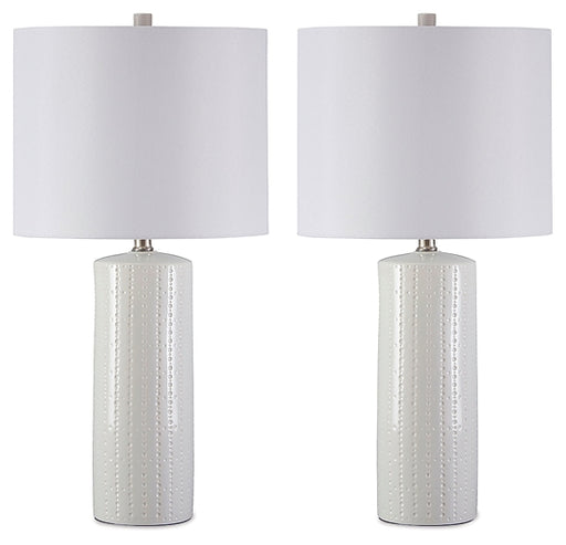 Signature Design by Ashley®With a textured neutral glaze, this monochromatic table lamp brings thoughts of sun, surf and sand to your space. Turn coastal chic to the contempo...