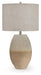| Details | Made of metal with drum hardback fabric shade, Cream and beige finish, 3-way switch, 1 E26 socket, type A bulb recommended (not included); 150 watts max or LED equivalent; UL Listed, Minor assembly required; simply attach preassembled shade to lamp base | |