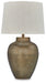 Stay on trend with lighting that exudes artisan refinement. Crafted from hammered aluminum with a goldtone patina finish, this table lamp fills a room with well-lit splendor. Simple in shape, it adds striking texture to your home.