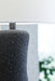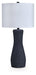 Stunning in its modern elegance, this table lamp knows how to make a statement. A sleek black textured finish accentuates the metal for an upscale look. What a winner by a sofa or bed.