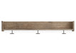 Details Made with engineered wood (MDF/particleboard/plywood) and decorative laminate for the right balance of affordability and durability, Dry, light finish over replicated oak grain with authentic touch, 3 metal hooks with brushed nickel-tone finish, Open shelf, Included wall mounting bracket eases installation