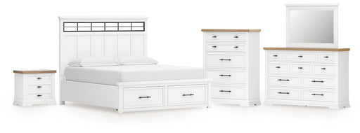 Benchcraft®Consumer's ChoiceWalk the line between industrial and farmhouse styles with the modern heft of this panel bed with storage, two nightstands, and dresser with mirror...