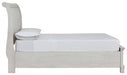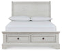 Details Includes headboard, storage footboard and rails with roll slats, Made with select oak veneer, engineered wood, solid wood components and cast resin components, available in Antiqued white (Robbinsdale), Medium Brown (Flynnter), Light Gray (Lettner), and Rustic Brown (Porter) finishes with grain texture, 2 smooth-gliding drawers with dovetail construction and metal ball bearing side glides, Dark bronze-tone knobs, Bed does not require additional foundation/box spring; accommodates most zero clearance adjustable bases with the addition of a bunkie board, Mattress available, sold separately , Assembly required.