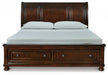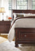 Details Includes headboard, storage footboard and rails with roll slats, Made with select oak veneer, engineered wood, solid wood components and cast resin components, available in Antiqued white (Robbinsdale), Medium Brown (Flynnter), Light Gray (Lettner), and Rustic Brown (Porter) finishes with grain texture, 2 smooth-gliding drawers with dovetail construction and metal ball bearing side glides, Dark bronze-tone knobs, Bed does not require additional foundation/box spring; accommodates most zero clearance adjustable bases with the addition of a bunkie board, Mattress available, sold separately , Assembly required.