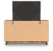 Nostalgic style, retooled for today’s trends. This dresser with mirror puts an elevated twist on mod aesthetics. Its warm brown tones reflect the mid-century vibes you love, while the angular base incorporates contemporary motifs. Integrated drawer handles round out the look in sleek style. With this dresser, you can build your bedroom into a modern haven with a touch of retro-cool flair.
