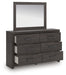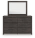 Designed with everyday style in mind, this dresser with mirror is a simply chic approach to modern living. A dark charcoal finish blends black and brown undertones, creating a versatile look that effortlessly pairs with your existing pieces. And for must-have function, six smooth-gliding drawers store clothes and linens in charming fashion.