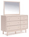Pretty in pink. This dresser with mirror keeps the spirit of your home’s modern aesthetic while suiting all your young one’s needs. Its subtle blush finish brings a playful, charming vibe to organizing clothes and other essentials. Made for her and styled for you, it’s a lovely addition to a beautifully chic child’s bedroom.