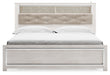The epitome of fashion-forward design, this king panel bookcase bed is a beautiful blend of comfort and luxury. Shiny chrome-tone accents, a pearlized finish and button-tufted upholstery bring a glam touch to the richly rustic appearance. Remote-controlled LED lighting adds style and modern convenience to your restful retreat.