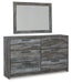 Casually cool style and lots of storage go hand in hand with this dresser with mirror. Its driftwood and smoky finish create an easy-going vibe that's perfect for setting the scene of a relaxed getaway. Six roomy drawers give you the space needed for stowing away clothes and more. Clean lines and modern handles provide a fuss-free look.