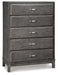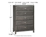 Contemporary style is shaping up beautifully. Designer elements are evident from every angle in this chest of drawers. Quality crafted with dovetail construction, the chest’s contoured drawers offer endless storage options. Sporting a distinctive weathered gray finish, it’s the epitome of casual elegance.