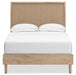 Clean-lined and contemporary—but far from stark—this bedroom package is a fresh style awakening. Pairing a light finish with replicated oak grain and textured beige details that replicate the look of cane, its mixed materials bring a naturally versatile vibe to your bedroom. Sleek, simple hardware plays perfectly with the modern aesthetic.