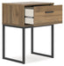 | Details | Made with engineered wood (MDF/particleboard/plywood) and decorative laminate for the right balance of affordability and durability, Rich honey brown finish over replicated walnut grain with authentic touch, Decorative laminate replicates natural or man-made material surfaces with consistent color, pattern and texture, Smooth-gliding drawer with vinyl-wrapped sides and back for durability, Metal legs and handle with dark pewter-tone finish, Assembly required | |