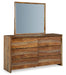 | Details | B790B4: Includes panel headboard, panel footboard, rails and slats , Made with sheesham wood, veneer and MDF substrate, Clear natural wood-tone finish , Headboard with beveled frame, Foundation/box spring required, sold separately , Mattress available, sold separately, Assembly required, B790B1: Includes dresser and mirror, Made with sheesham wood, veneer and MDF substrate, Clear natural wood-tone finish , Front frame with thick beveled edge, 6 smooth-gliding drawers with fully finished interior, dovetail construction and heavy duty ball-bearing side glides, Mirror attaches to back of dresser, | |