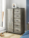 | Details | Made with engineered wood (MDF/particleboard/plywood) and decorative laminate for the right balance of affordability and durability, Rustic warm gray finish over replicated oak grain with authentic touch, Decorative laminate replicates natural or man-made material surfaces with consistent color, pattern and texture, Matte black drawer handles, 5 smooth-gliding drawers, 4 shelves behind hinged cabinet, Safety is a top priority, clothing storage units are designed to meet the most current standard for stability, ASTM F 2057 (ASTM International), Drawers extend out to accommodate maximum access to drawer interior while maintaining safety, Minor assembly required | |