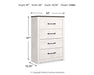 | Details | Made of engineered wood (MDF/particleboard), and decorative laminate, White rustic finish with replicated cedar grain, Rustic gray planked replicated oak grain with authentic touch, 4 smooth-gliding drawers with faux linen lining, Large scale dark colored handles, Safety is a top priority, clothing storage units are designed to meet the most current standard for stability, ASTM F 2057 (ASTM International), Drawers extend out to accommodate maximum access to drawer interior while maintaining safety, Assembly required | |