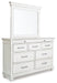 | Details | B777B8: Includes king panel headboard and footboard with king panel rails, Made with solid wood, veneers and engineered wood, Distressed whitewash finish, Foundation/box spring required, sold separately, Mattress available, sold separately, Assembly required, B777B1: Includes dresser and mirror, Made with solid wood, veneers and engineered wood, Distressed whitewash finish, Dark gray pewter-tone finished metal hardware, 7 smooth-gliding drawers, plus 2 small-scaled accessory drawers, Mirror attaches to back of dresser, Assembly required, | |