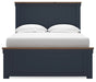 | Details | B414B3: Includes panel headboard, footboard, rails and slats, Made with hardwood solids, mindi wood veneer and MDF substrates, Two-tone finish features a dark slate blue with a light brown wood-tone top, Foundation/box spring required, sold separately, Mattress available, sold separately, Assembly required, B414B1: Includes dresser and mirror, Made with hardwood solids, mindi wood veneer and MDF substrates, Two-tone finish features a dark slate blue with light brown wood-tone top, Nickel-tone metal knobs, 6 drawers with fully finished interior, dovetail construction and heavy duty ball-bearing side glides, Mirror attaches to back of dresser, | |