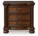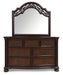 Details B764B5: Includes poster headboard/footboard panels, rails and headboard posts, Made with hardwood solids, cherry veneer with MDF substrates, decorative cast resin and furniture grade plastic components , Cherry brown finish, Headboard with metallic accent filigree, Foundation/box spring required, sold separately, Mattress available, sold separately, Assembly required, B764B1: Includes dresser and mirror, Made with hardwood solids, cherry veneer with MDF substrates, decorative cast resin and furniture grade plastic components , Cherry brown finish, Decorative metal drawer pulls with dark bronze-tone finish, 7 drawers with fully finished interior, dovetail construction and ball-bearing side glides, Mirror attaches to back of dresser, B764-46: Made with hardwood solids, cherry veneer with MDF substrates, decorative cast resin and furniture grade plastic components, Cherry brown finish, Decorative metal drawer pulls with dark bronze-tone finish, 5 drawers with fully finished interior, dovetail construction and ball-bearing side glides, B764-93: Made with hardwood solids, cherry veneer with MDF substrates, decorative cast resin and furniture grade plastic components, Cherry brown finish, Decorative metal drawer pulls with dark bronze-tone finish, 2 drawers with fully finished interior, dovetail construction and ball-bearing side glides, Pull-out tray behind bottom drawer,