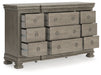 Details Made with hardwood solids, birch veneer and MDF substrate, Light gray finish enhances the natural wood grain, Ring pull hardware, 9 drawers with fully finished interiors, dovetail construction and ball-bearing side glides, Jewelry drawer conveniently located in the center valance