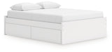 | Details | Includes platform bed panels, platform rails, roll slats and 2 side storage drawers, Made with engineered wood (MDF/particleboard/plywood) and decorative laminate for the right balance of affordability and durability, Solid white finish, Decorative laminate replicates natural or man-made material surfaces with consistent color, pattern and texture, 2 smooth-gliding storage drawers with ball-bearing side glides; vinyl-wrapped sides and back for durability, Bed does not require additional foundation/box spring; accommodates most zero clearance adjustable bases with the addition of a bunkie board, Mattress available, sold separately, Assembly required | |
