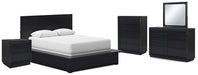 Londer Queen Panel Bed with Mirrored Dresser, Chest and Nightstand
