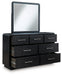 | Details | B821B2: Includes upholstered panel headboard, footboard and rails , Made with hardwood solids and ash veneer, Black finish on textured wood grain surface , Waterfall edges, Polyester upholstery, Foundation/box spring required, sold separately, Mattress available, sold separately, Assembly required, B821B1: Includes dresser and mirror, Made with hardwood solids and ash veneer, Black finish on textured wood grain surface , Burnished nickel-tone pulls, Waterfall edges, 7 smooth-gliding drawers with fully finished interior, dovetail construction and heavy duty ball-bearing side glides, Mirror attaches to back of dresser, B821-46: Made with hardwood solids and ash veneer, Black finish on textured wood grain surface, Burnished nickel-tone pulls, Waterfall edges, 5 smooth-gliding drawers with fully finished interior, dovetail construction and heavy duty ball-bearing side glides, B821-91: Made with hardwood solids and ash veneer, Black finish on textured wood grain surface, Brushed nickel-tone pulls, Waterfall edges, Smooth-gliding drawer with fully finished interior, dovetail construction and heavy duty ball-bearing side glides, Lower cubby shelf with built-in LED nightlight, 110V power supply with USB-A and USB-C charging ports, Power cord included; UL Listed, | |