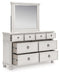 | Details | PCB823B5: Includes headboard/footboard panels, posts and poster rails , Made with hardwood solids, veneers and MDF substrates , Side rails feature laminated solid hardwood slat support rails (or LVL) with glued and screwed blocking for added strength, Rubbed antiqued white finish , Foundation/box spring required, sold separately, Mattress available, sold separately , Assembly required, PCB823B1: Includes dresser and mirror, Dresser made with hardwood solids, veneers and MDF substrates , Mirror made with solid wood, Rubbed antiqued white finish, Metal hardware with pewter-tone finish, 8 smooth-gliding drawers with fully finished interiors, French/English dovetail construction and heavy-duty ball-bearing side glides, Top drawers felt lined, Mirror attaches to back of dresser, PCB823-93: Made with hardwood solids, veneers and MDF substrates, Rubbed antiqued white finish, Metal hardware with pewter-tone finish, 3 smooth-gliding drawers with fully finished interiors, French/English dovetail construction and heavy-duty ball-bearing side glides, Top drawer felt lined, 110V power supply with USB-A and USB-C charging ports, Power cord included; UL listed, | |