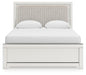 | Details | Includes upholstered panel headboard, panel footboard and panel rails , Made with engineered wood (MDF/particleboard/plywood) and decorative laminate for the right balance of affordability and durability , Matte white finish with subtle replicated wood grain , Decorative laminate replicates natural or man-made material surfaces with consistent color, pattern and texture , Polyester upholstery , Chrome-tone and glitter accents, Foundation/box spring required, sold separately, Mattress available, sold separately, Minor assembly required | |