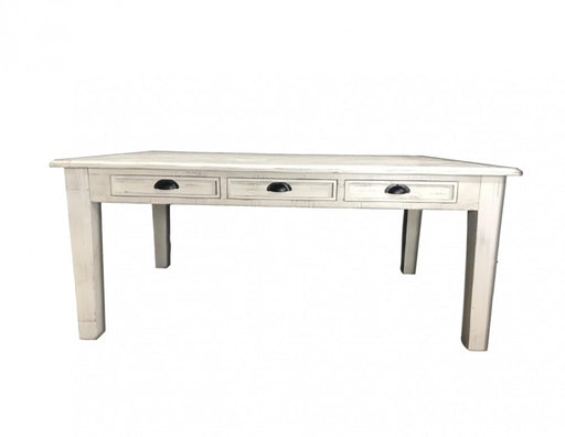 Split NickelFarmhouse style Dining Room table that is charming and elegant. Beautifully crafted with Solid Pine, this dining table has a weathered white fini...