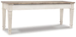 Details Made of wood, acacia veneer and engineered wood, Distressed grayish white finish, Seat opens to reveal hidden storage, Assembly required