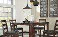 | Details | Includes table and 4 upholstered chairs, Table made of veneers, wood and engineered wood, Wood frame chairs, Cushioned seats with faux leather upholstery, Seats 4, Assembly required | |