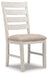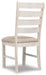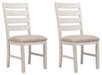 | Details | Made of wood and engineered wood, Distressed grayish white finish, Cushioned seat with polyester upholstery, Tall ladderback design, Assembly required | |