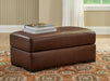 Effortlessly stylish, indulgently comfortable. This ottoman encourages everyday relaxation with an invitingly plush, spacious cushion. It embodies affordable luxury, pairing the sleek appeal of top grain leather with expertly matched faux leather. Suiting spaces from casual to contemporary, the ottoman's universal appeal makes staging your space nearly effortless.