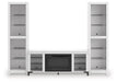 | Details | Includes TV stand with electric fireplace and 2 piers, Made with engineered wood (MDF/particleboard/plywood) and decorative laminate for the right balance of affordability and durability, Matte white finish with subtle replicated wood grain, Decorative laminate replicates natural or man-made material surfaces with consistent color, pattern and texture, Legs with black finish, TV stand with 4 backlit glass shelves, Pier with 4 backlit glass and single engineered wood shelves , Fireplace insert and backlit shelves feature color and brightness controlled LED lighting, 3 color settings for synchronized LED lights: blue, red and white, Remote control with LED display, Power cord included; UL Listed, Minor assembly required | |