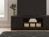 | Details | Made with engineered wood (MDF/particleboard/plywood) and decorative laminate for the right balance of affordability and durability, Dark charcoal finish over replicated oak grain, Decorative laminate replicates natural or man-made material surfaces with consistent color, pattern and texture, Integrated door pulls, 2 cabinets, each with an adjustable shelf, Open center shelf, Compatible with the W100-703 fireplace insert (sold separately), Assembly required | |