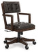 Classic meets contemporary in this home office chair. With a rich dark wood tone and tufted faux leather, it suits today’s trends while balancing a timeless appeal. Casters provide easy mobility, while the adjustable seat allows you to find your perfect position for work, study or gameplay.