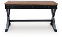Raise the bar on modern farmhouse style with this home office desk. Its casual good looks are accentuated with a two-tone finish, which pairs a warm satin black base with a contrasting butcher block veneer desktop. The drop-down keyboard and cord management raceway bring both form and function to your at-home workspace. Use this desk as a stand-alone work area, or combine it with the matching desk return (sold separately) to create a larger work surface.