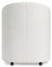 Details H687-27: Made of hardwood solids and veneer with MDF substrate, Warm brown wood-tone finish, 2 half round door cabinets, each with adjustable shelf, Right-side cabinet includes cutouts for cord management and ventilation for use with a CPU, Open raceway for power cord management located under the top, Assembly required, H687-01A: Frame made with engineered wood, Polyester upholstery, Foam cushion, Casters for easy mobility, Assembly required,