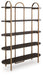 With its mixed-material look, this bookcase seamlessly fits into a wide range of modern settings. Five fixed display shelves in a dark brown finish are balanced by sleek antiqued goldtone metal supports. Offering storage and superior style for books or showcasing decor, this bookcase is a masterful way to stay organized.
