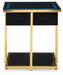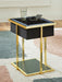 | Details | Made with engineered wood, glass and metal, Metal frame with goldtone finish, Black glass top, Black polyester fabric on sides, Fixed lower shelf, Tabletop with wireless charging and touch-button controls, 6.5" full-range speaker; 2" tweeter speaker, Wireless connection; aux audio input; MP3 port, USB charging ports (USB-A and USB-C), LED light under tabletop, Power cord included; UL Listed | |