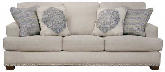 Benchcraft®This sofa has an alluring look that's guaranteed to turn heads. Richly textured fabric in a light, easygoing hue is enhanced by even lighter flax p...