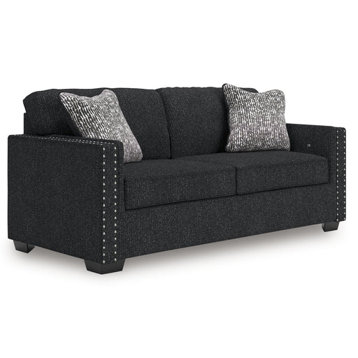 Benchcraft®This stunning sofa leaves a lasting impression. Its cozy cushions, chic coal-colored upholstery and striking nailhead trim are a perfect blend of c...