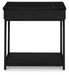 | Details | Made with engineered wood, glass and metal, Metal frame with black finish, Polyester fabric in black, Fixed lower shelf, Glass tabletop with wireless charging and touch-button controls, Two 3" full-range speakers; two 1" tweeter speakers; 5.25” subwoofer, Wireless connectivity; aux audio input; MP3 port, USB-A and USB-C charging ports, LED light effect on top, Power cord included; UL Listed | |