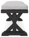 Sporting an easy-on-the-eyes elegance, this bench with cushion elevates the art of alfresco living. Beautiful and durable enough for indoor and outdoor use, this casually cool seating entices with X-leg farmhouse styling and a plush, removable cushion wrapped in high-performing Nuvella® fabric that’s a breeze to keep clean.