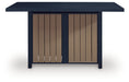 Easy-breezy beauty, made to withstand the elements. This outdoor bar table with fire pit makes a serene statement with its soothing shade of blue and contrasting wood-look cabinets. An integrated fire pit in the top adds a perfectly cozy vibe. Crafted with durable materials for added longevity, it's a smartly stylish addition to your outdoor oasis.
