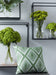 Details Olefin cover, Embroidered diamond design in green and white, Reverses to embroidered X design in green and white, Fiber filled, Zipper closure, Made for indoor/outdoor use, Imported, Machine washable cover