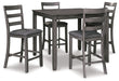 | Details | Includes counter height table and 4 barstools, Made of wood, veneer and engineered wood, Medium charcoal gray finish, Ladderback barstools, Cushioned seats covered in textured gray polyester upholstery, Table with tapered leg design, Assembly required | |