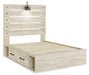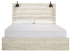 Includes headboard, footboard, side storage, rail and slats, Made of engineered wood (MDF/particleboard) and decorative laminate, Wispy white finish over replicated oak grain with authentic touch, Large-scale hardware with dark finish, 2 decorative sconce lights, LED with 3 AA batteries, 2 smooth-gliding storage drawers, 2 storage cubbies, 2 slim-profile USB charging ports, Power cord included; UL-listed, Bed does not require additional foundation/box spring; accommodates most zero clearance adjustable bases with the addition of a bunkie board, Mattress available, sold separately, Assembly required |